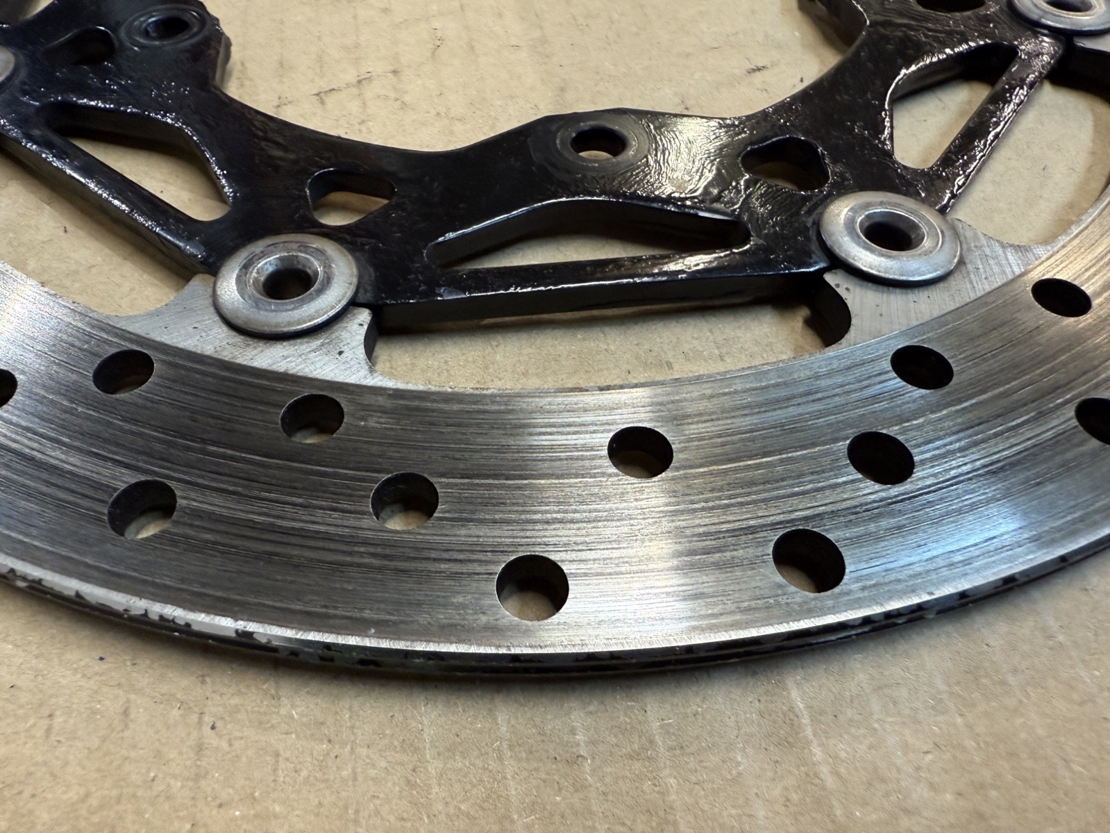PREVIOUS OWNER HAS (FOR SOME UNKNOWN REASON) PAINTED THE CARRIERS BY HAND IN BLACK PAINT. This is just cosmetic. Lots of life left on the discs.
