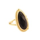 Black Onyx Pear Shape Yellow Gold Plated Collet Set Statement Adjustable Ring