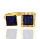 Double Square Rings Yellow Gold Plated Two Stone Adjustable Ring With Lapis & CZ