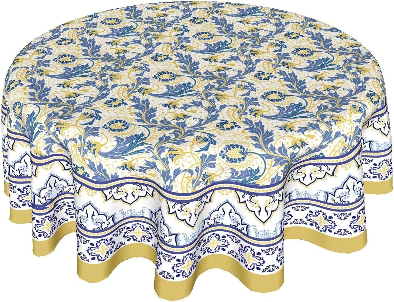 The yellow and blue floral tablecloth is made of high quality polyester.