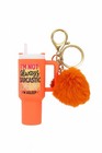 Handmade Orange Tumbler Keychain w/Pom Pom Cute Mini Cup Key Chain Bag Charm