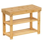 Bamboo Shoe Rack Wood Bench with Storage Shelf for Entryway Small Space Beige