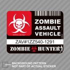 Zombie Assault Vehicle License Sticker Decal Vinyl apocalypse