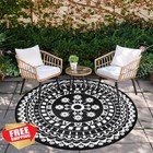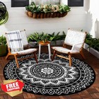 Capslpad 5ft Round Outdoor Patio Rug - Reversible Waterproof Boho