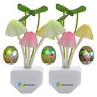 2PACK Mushroom LED Night Lights Romantic Light Sensor Plug-in Wall Lamps 7 Color