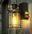 Retro Industrial Black Outdoor Wall Lights with GFCI Outlet - motion sensor