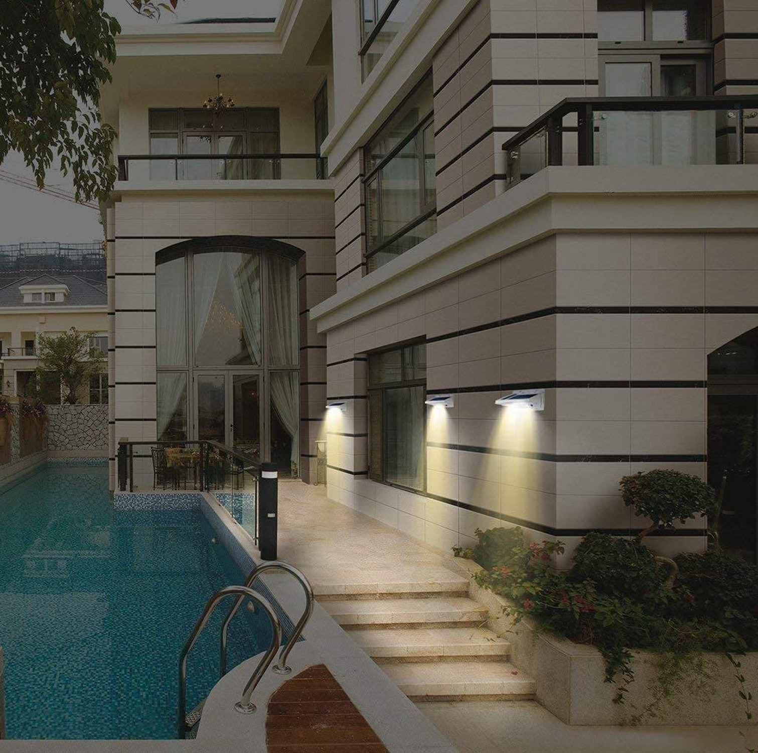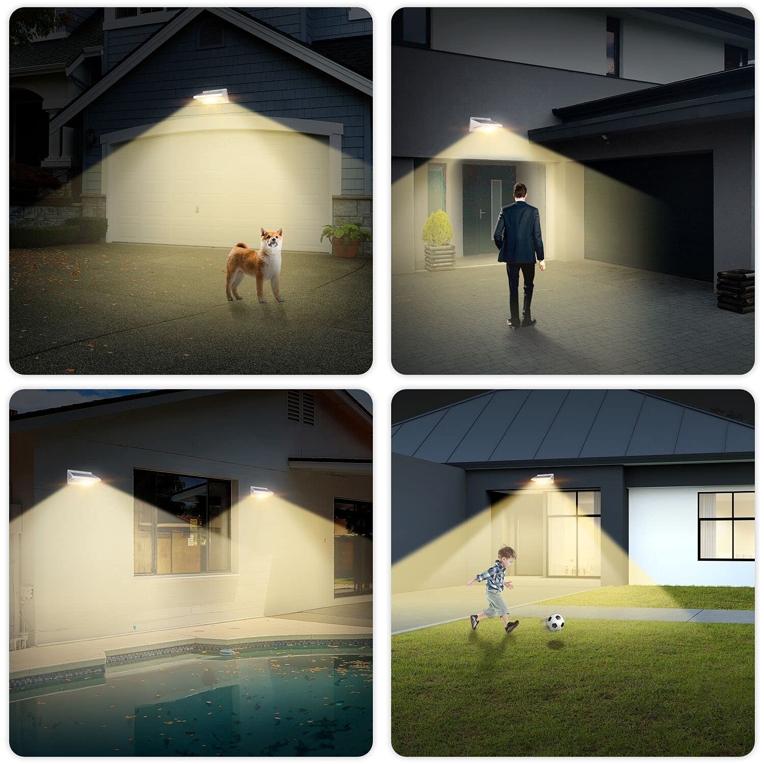 Wide Application: No wired need, no more bills. Fits for garage fence garden yard porch pool etc. When motion is detected it provides max-brightness illumination for security and safety protection for your property all night