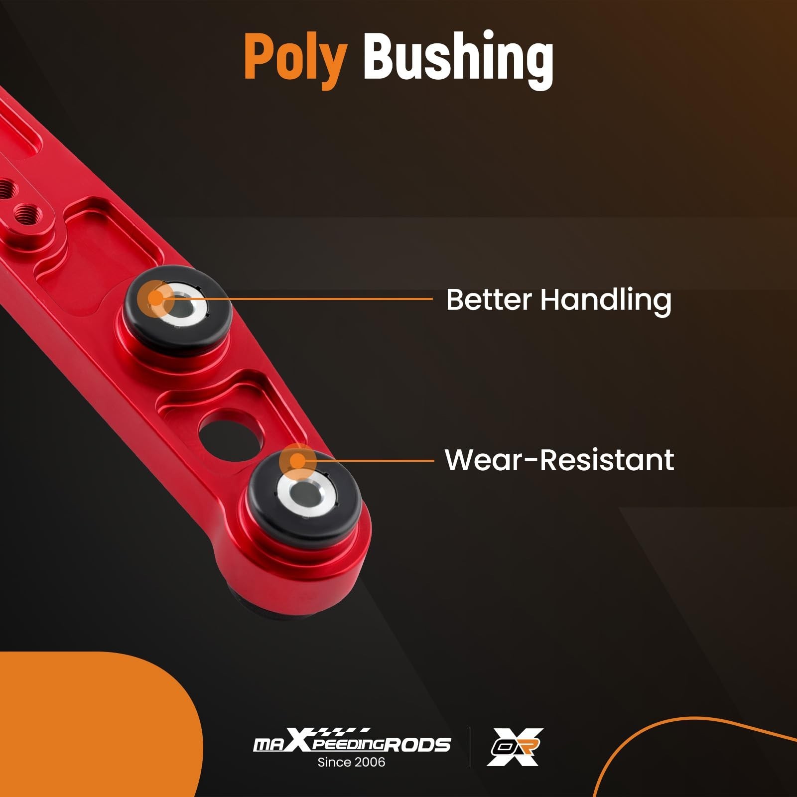 Strong Poly Bushings: Rear lower control arms have preinstalled solid polyurethane bushings, which are firm and long-lasting, withstand weather conditions, and provide great road response