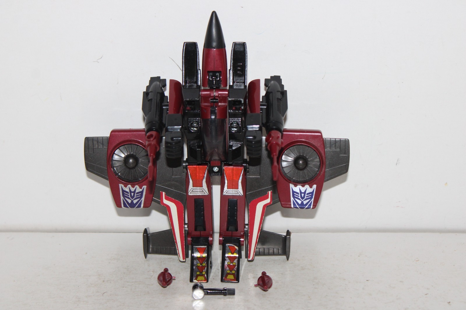 Hi, and welcome to my auction. This auction will be for an original transformers g1 thrust complete. He is in good condition, has some paint wear, no dent marks on nosecone, some sticker wear.
