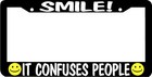 SMILE IT CONFUSES PEOPLE smiley License Plate Frame