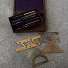 Antique Drawing Instrument set /Wood cased Draughtsman's Drawing Instrument set