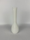 Vintage Milk Glass Bud Vase Ribbed Body Scalloped Rim White 8.6" Tall