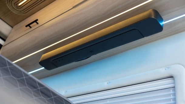 Like every Sandy Van, AquaVan comes fully dialed with the essentials. The kitchenette and sink are right where you expect them, paired with a 12V fridge and LED lighting tuned for life off-grid. Power is handled by a robust 412Ah lithium battery bank and the full RedArc system — Manager75, TVMS Rogue, and RedVision touchscreen display. With full Bluetooth control, you can manage lights, water pump, battery status, and more — smart-home convenience, wherever you park.
